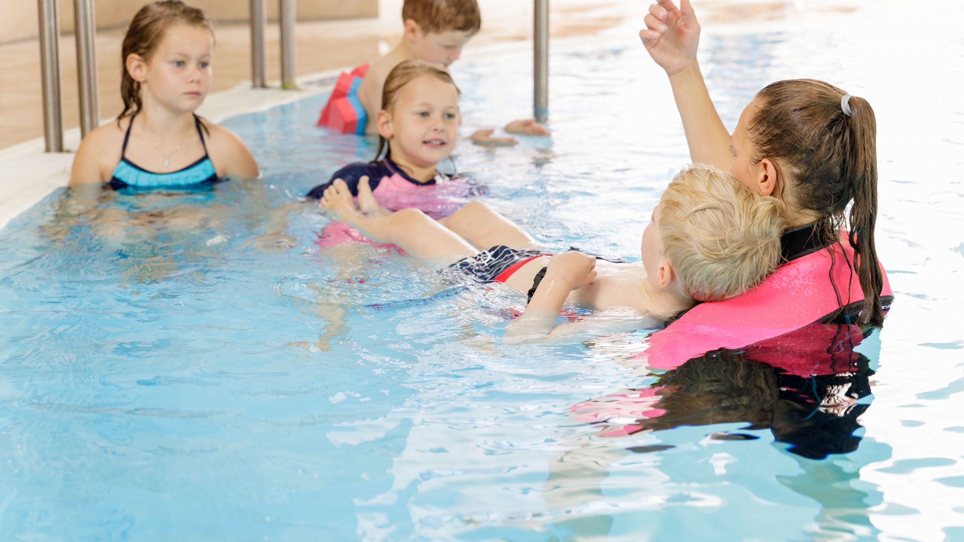 - Ein Kurs mit 5 Schwimmeinheiten à 45 Minuten kosten € 99,- pro Kind