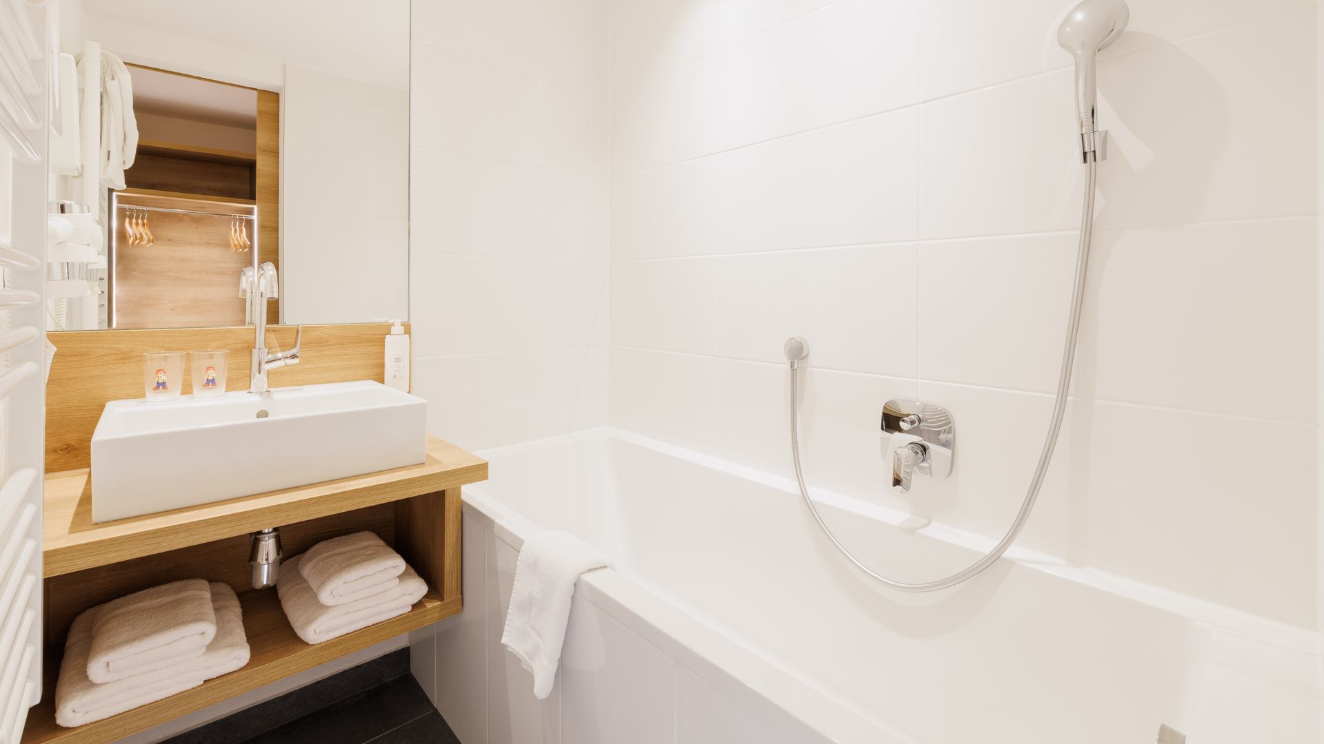 Fön, Badekorb mit Bademänteln für Groß & Klein, Sauna- und Badetücher, Telefon, TV und WLAN, Kühlschrank auf Anfrage erhältlich